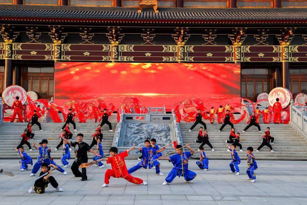 大成殿广场上好多牛,旌旗环绕,队列整齐,擂鼓轰鸣。大会在刚劲威猛、气势如虹的《八极震云天》表演节目中拉开帷幕,不同年龄段的八极拳习练者登台展示精湛技艺,一招一式尽显扎实功底,大有“晃膀撞天倒,跺脚震九州”之雄风。现场观众沉浸于独特的武术魅力之中,也近距离领略到八极拳的深厚底蕴。