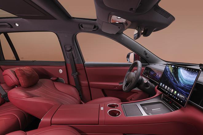 空间方面,五座车型二排腿部空间达1030mm,头部空间1050mm,可切换双人沙滩椅模式以及3m大床模式。此外,二排门板扶手融合木纹设计与通风、按摩、加热调节。六座版本二排配备零重力座椅,120°双零压角搭配水平自适应扶手,隐藏杯架、66W快充与手机位俱全。三排腿部空间达810mm,头部937mm。