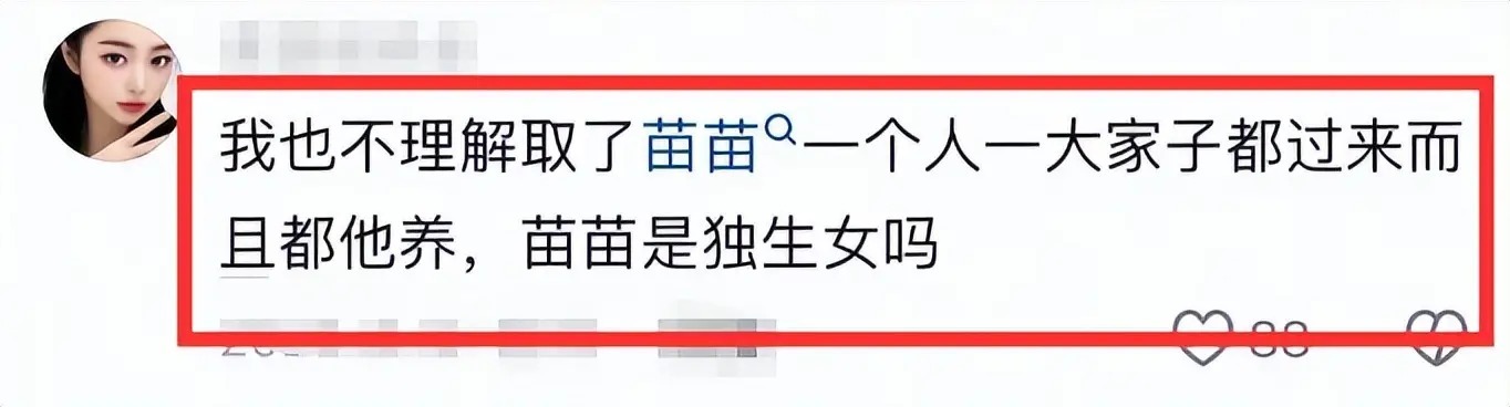 所以很多矛头都指向了苗苗,大家不理解苗苗为什么把全家都接过来生活。
