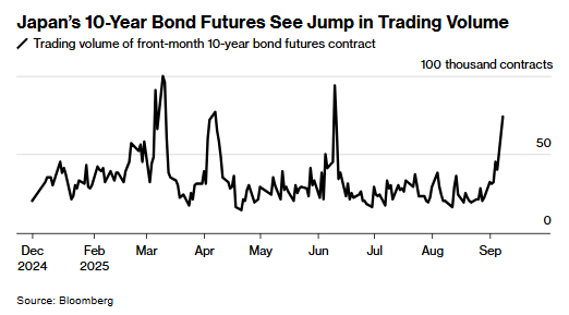 相比之下,短端收益率可能因政治不确定性阻碍日本央行政策正常化而走低。隔夜指数互换数据显示,市场对日本央行10月加息概率已从上周的50%以上降至21%,美债收益率回落(因非农数据强化美联储降息预期)也形成了支撑。